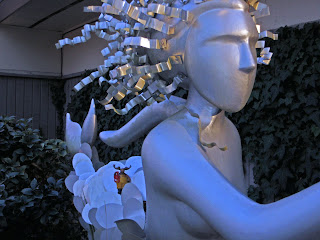 Katahdin's excitement for the day was riding the back of an aluminum mermaid at the front office door of the campground. You've probably seen animals in different cities that become their symbols, where local artists paint them up (think elephants and donkeys in DC, horses in some places, cows etc). Here in the Beaufort area it's mermaids, and we say several downtown plus the one out here at PointSouth. Anyhow, the attached picture is of Katahdin riding her!
